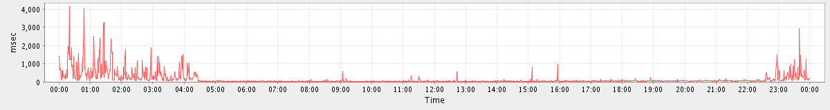 avg(SyncGalRequest) = 344.60 avg(CreateAppointmentRequest) = 269.19 avg(ModifyTaskRequest) = 445.00 avg(BackupRequest) = 422867.00 avg(FolderActionRequest.empty) = 2700.32 avg(FolderActionRequest.sync) = 23266.00 avg(BackupQueryRequest) = 581.80 avg(GetQuotaUsageRequest) = 3160.00 avg(ConvActionRequest.delete) = 600.23 avg(SendMsgRequest) = 328.06