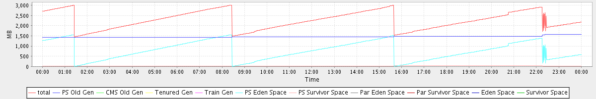 avg(total free) = 2506.27 avg(PS Old Gen free) = 1746.62 avg(CMS Old Gen free) = 0.00 avg(Tenured Gen free) = 0.00 avg(Train Gen free) = 0.00 avg(PS Eden Space free) = 759.30 avg(PS Survivor Space free) = 0.35 avg(Par Eden Space free) = 0.00 avg(Par Survivor Space free) = 0.00 avg(Eden Space free) = 0.00 avg(Survivor Space free) = 0.00