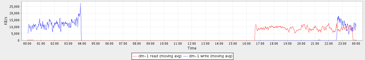 avg(dm-1 read) = 25.56 avg(dm-1 write) = 649.48