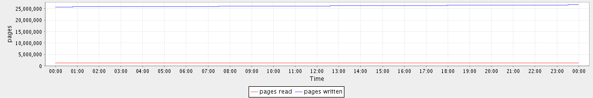 avg(pages read) = 1189079.32 avg(pages written) = 26228454.67
