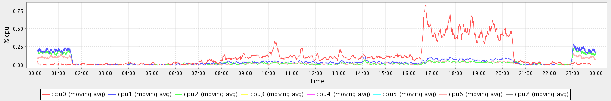 avg(cpu0) = 0.13 avg(cpu1) = 0.05 avg(cpu2) = 0.03 avg(cpu3) = 0.00 avg(cpu4) = 0.00 avg(cpu5) = 0.00 avg(cpu6) = 0.03 avg(cpu7) = 0.00