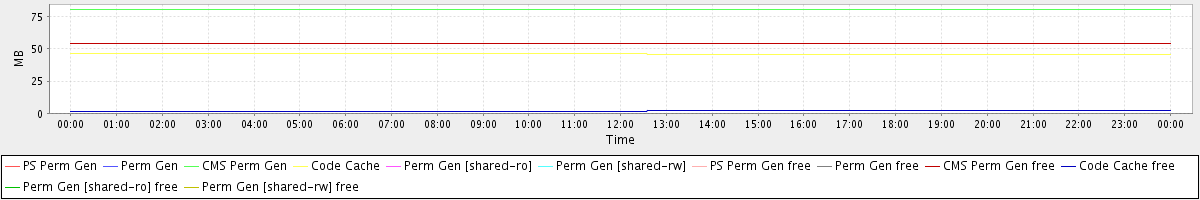 avg(PS Perm Gen) = 0.00 avg(Perm Gen) = 0.00 avg(CMS Perm Gen) = 80.49 avg(Code Cache) = 45.94 avg(Perm Gen [shared-ro]) = 0.00 avg(Perm Gen [shared-rw]) = 0.00 avg(PS Perm Gen free) = 0.00 avg(Perm Gen free) = 0.00 avg(CMS Perm Gen free) = 54.03 avg(Code Cache free) = 1.81 avg(Perm Gen [shared-ro] free) = 0.00 avg(Perm Gen [shared-rw] free) = 0.00