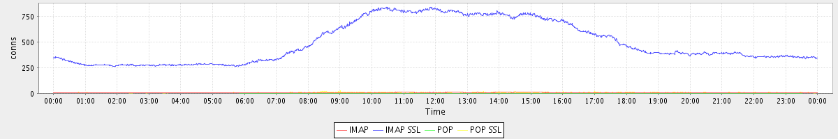 Host zm05.stanford.edu: Mailboxd: Active Connections by Client Protocol