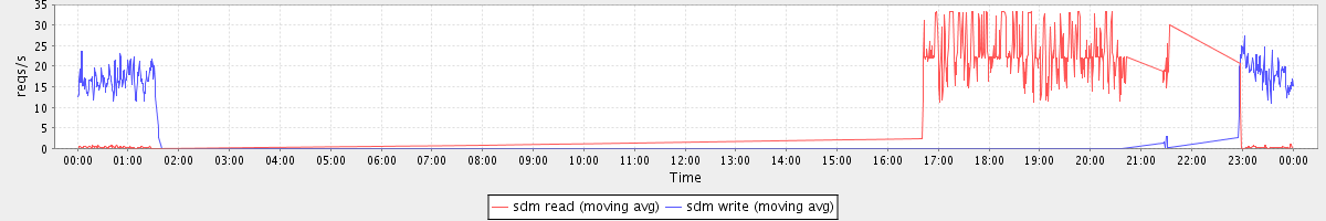 avg(sda read) = 0.99 avg(sda write) = 3.17