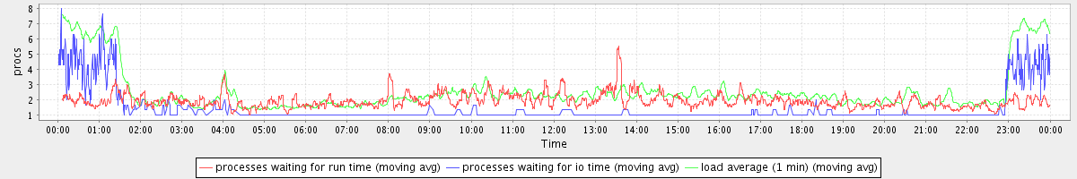 avg(processes waiting for run time) = 1.93 avg(processes waiting for io time) = 0.64 avg(load average (1 min)) = 2.58