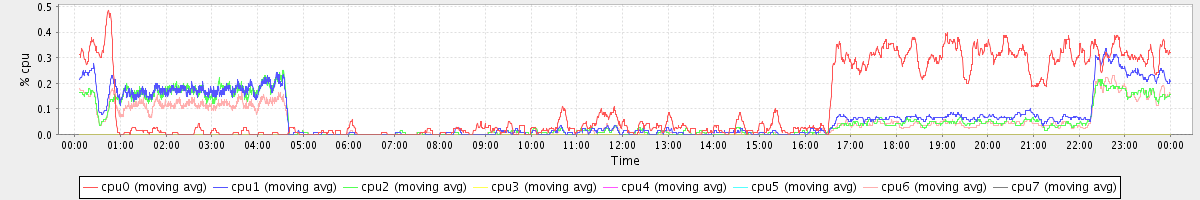 avg(cpu0) = 0.12 avg(cpu1) = 0.07 avg(cpu2) = 0.06 avg(cpu3) = 0.00 avg(cpu4) = 0.00 avg(cpu5) = 0.00 avg(cpu6) = 0.05 avg(cpu7) = 0.00