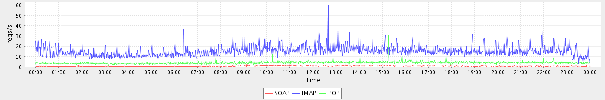 Host zm04.stanford.edu: Mailboxd: Request Rate by Client Protocol