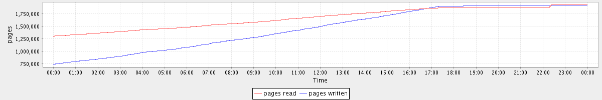avg(pages read) = 1665491.58 avg(pages written) = 1454076.36