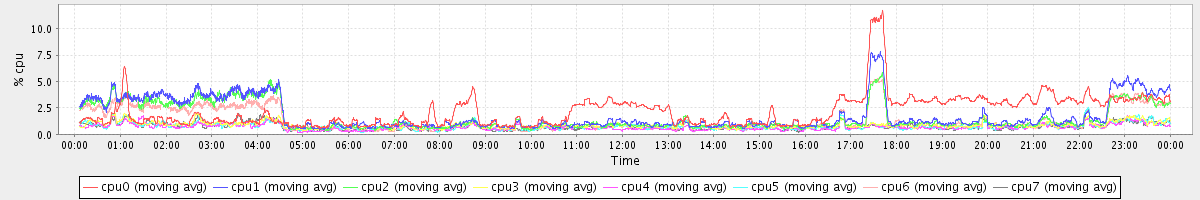 avg(cpu0) = 0.12 avg(cpu1) = 0.06 avg(cpu2) = 0.05 avg(cpu3) = 0.00 avg(cpu4) = 0.00 avg(cpu5) = 0.00 avg(cpu6) = 0.04 avg(cpu7) = 0.00