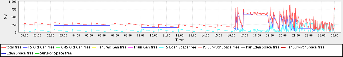 avg(total free) = 297.42 avg(PS Old Gen free) = 224.51 avg(CMS Old Gen free) = 0.00 avg(Tenured Gen free) = 0.00 avg(Train Gen free) = 0.00 avg(PS Eden Space free) = 71.91 avg(PS Survivor Space free) = 1.00 avg(Par Eden Space free) = 0.00 avg(Par Survivor Space free) = 0.00 avg(Eden Space free) = 0.00 avg(Survivor Space free) = 0.00
