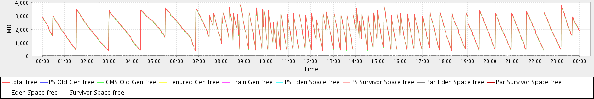 avg(total free) = 2015.80 avg(PS Old Gen free) = 0.00 avg(CMS Old Gen free) = 1994.20 avg(Tenured Gen free) = 0.00 avg(Train Gen free) = 0.00 avg(PS Eden Space free) = 0.00 avg(PS Survivor Space free) = 0.00 avg(Par Eden Space free) = 21.54 avg(Par Survivor Space free) = 0.06 avg(Eden Space free) = 0.00 avg(Survivor Space free) = 0.00