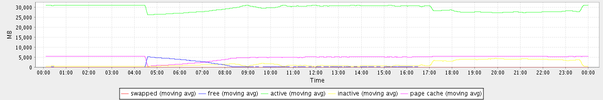 avg(swapped) = 0.23 avg(free) = 581.59 avg(active) = 29316.09 avg(inactive) = 1613.02 avg(page cache) = 4745.54