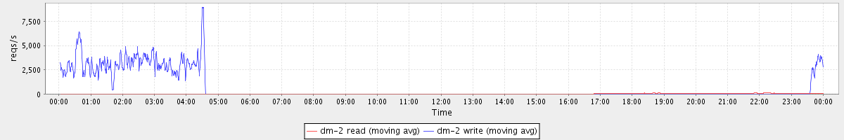 avg(dm-2 read) = 2609.19 avg(dm-2 write) = 2627.94