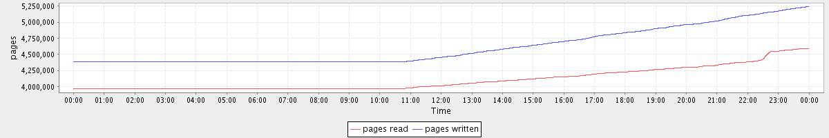 avg(pages read) = 4107771.96 avg(pages written) = 4612115.12