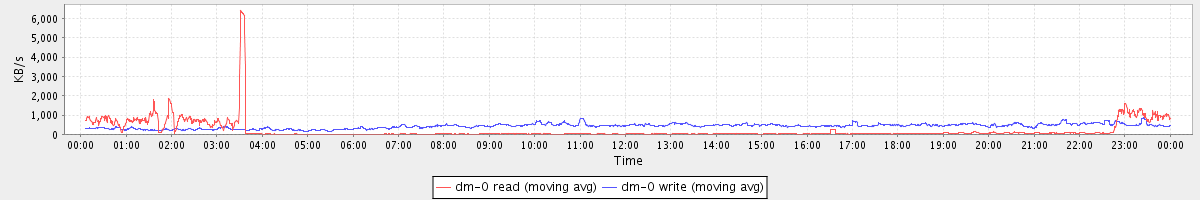 avg(dm-1 read) = 2199.37 avg(dm-1 write) = 68.23