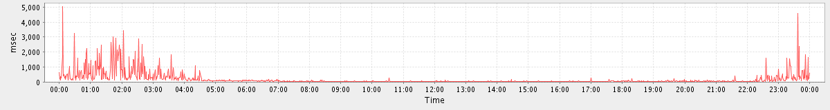 avg(AutoCompleteGalRequest) = 1133.70 avg(BackupQueryRequest) = 367.60 avg(CreateAppointmentRequest) = 374.25 avg(CreateFolderRequest) = 1174.00 avg(MaintainTablesRequest) = 46611.00 avg(GetQuotaUsageRequest) = 3193.00 avg(ConvActionRequest.delete) = 508.45 avg(SendMsgRequest) = 386.36 avg(BackupRequest) = 262954.00 avg(FolderActionRequest.empty) = 28286.78