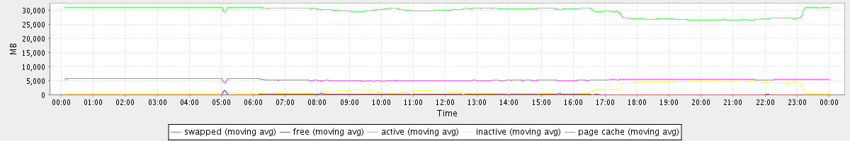 avg(swapped) = 0.22 avg(free) = 108.82 avg(active) = 29597.83 avg(inactive) = 1681.31 avg(page cache) = 5304.34