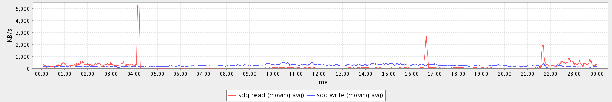 avg(sda1 read) = 25.78 avg(sda1 write) = 46.44