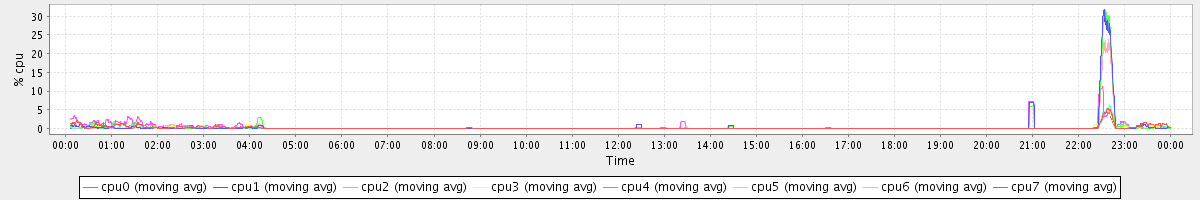 avg(cpu0) = 0.58 avg(cpu1) = 0.45 avg(cpu2) = 0.31 avg(cpu3) = 0.31 avg(cpu4) = 0.22 avg(cpu5) = 0.15 avg(cpu6) = 0.16 avg(cpu7) = 0.13