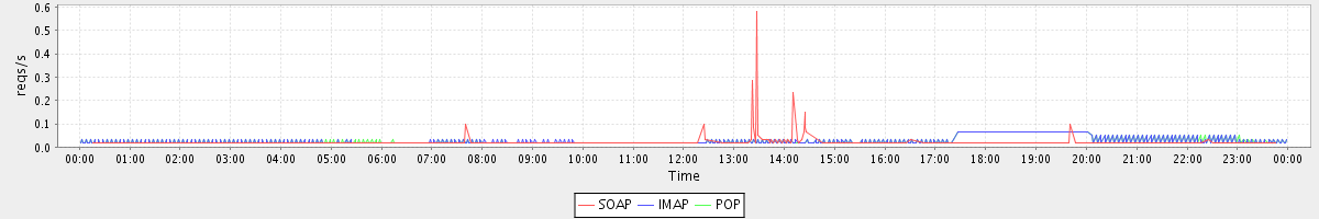 Host zm02-int.stanford.edu: Mailboxd: Request Rate by Client Protocol