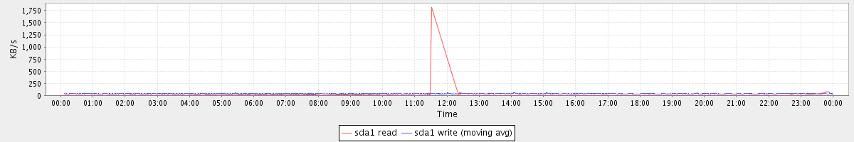 avg(sda1 read) = 0.72 avg(sda1 write) = 36.74