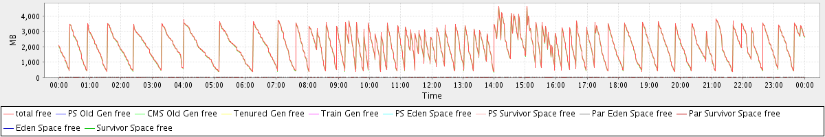 avg(total free) = 2044.25 avg(PS Old Gen free) = 0.00 avg(CMS Old Gen free) = 2023.10 avg(Tenured Gen free) = 0.00 avg(Train Gen free) = 0.00 avg(PS Eden Space free) = 0.00 avg(PS Survivor Space free) = 0.00 avg(Par Eden Space free) = 21.09 avg(Par Survivor Space free) = 0.06 avg(Eden Space free) = 0.00 avg(Survivor Space free) = 0.00