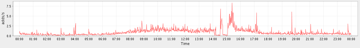 max(SearchConvRequest) = 48.00 max(MsgActionRequest.move) = 900.00 max(NoOpRequest) = 143.00 max(GetFolderRequest) = 319.00 max(SyncRequest) = 170.00 max(CreateContactRequest) = 228.00 max(GetAppointmentRequest) = 231.00 max(SearchRequest) = 177.00 max(GetContactsRequest) = 112.00 max(MsgActionRequest.delete) = 64.00