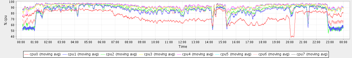 avg(cpu0) = 74.63 avg(cpu1) = 82.81 avg(cpu2) = 84.31 avg(cpu3) = 91.56 avg(cpu4) = 93.32 avg(cpu5) = 92.10 avg(cpu6) = 85.78 avg(cpu7) = 92.53