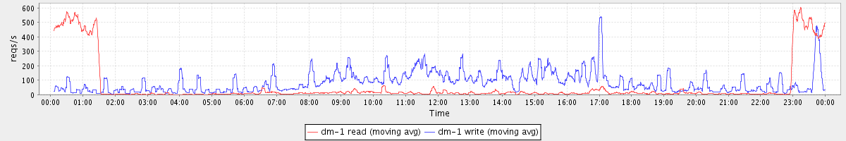 avg(dm-0 read) = 443.59 avg(dm-0 write) = 788.97