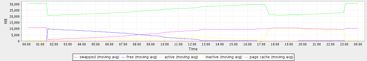 avg(swapped) = 0.23 avg(free) = 2796.64 avg(active) = 25054.21 avg(inactive) = 3589.97 avg(page cache) = 7469.08