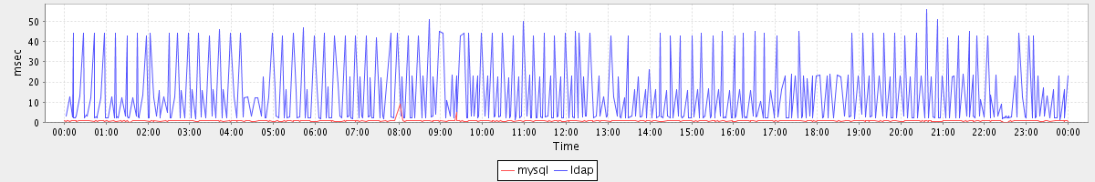 avg(mysql) = 0.28 avg(ldap) = 4.51