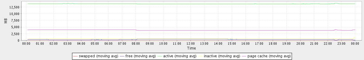 avg(swapped) = 0.23 avg(free) = 334.78 avg(active) = 13718.49 avg(inactive) = 533.20 avg(page cache) = 3816.21