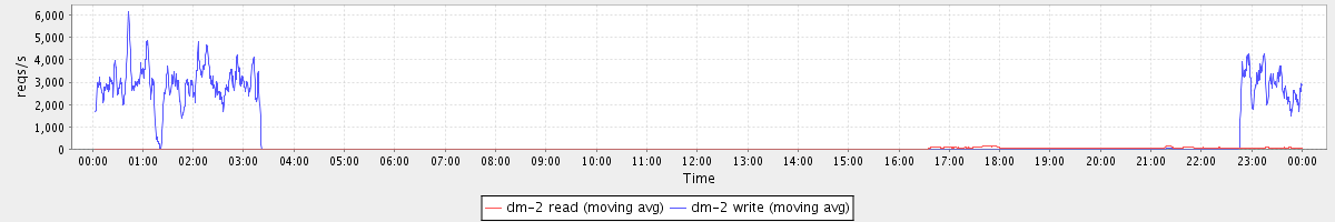 avg(dm-2 read) = 17.66 avg(dm-2 write) = 550.07