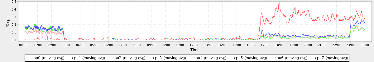 avg(cpu0) = 0.10 avg(cpu1) = 0.04 avg(cpu2) = 0.03 avg(cpu3) = 0.00 avg(cpu4) = 0.00 avg(cpu5) = 0.00 avg(cpu6) = 0.03 avg(cpu7) = 0.00