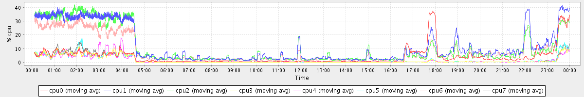 avg(cpu0) = 1.15 avg(cpu1) = 0.22 avg(cpu2) = 0.21 avg(cpu3) = 0.09 avg(cpu4) = 0.09 avg(cpu5) = 0.09 avg(cpu6) = 0.16 avg(cpu7) = 0.09