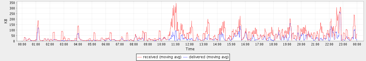 avg(received msgs) = 0.56 avg(delivered msgs) = 0.53 avg(received x rcpts) = 0.56