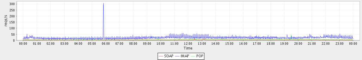 Host zm08.stanford.edu: Mailboxd: Request Rate by Client Protocol