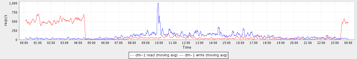 avg(dm-0 read) = 477.42 avg(dm-0 write) = 953.19