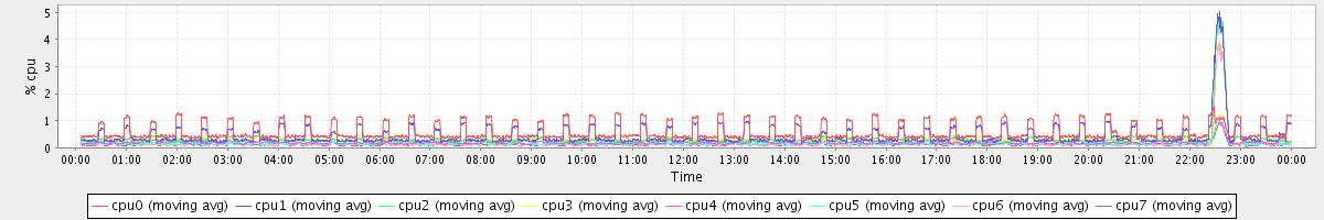 avg(cpu0) = 0.58 avg(cpu1) = 0.43 avg(cpu2) = 0.30 avg(cpu3) = 0.30 avg(cpu4) = 0.19 avg(cpu5) = 0.16 avg(cpu6) = 0.16 avg(cpu7) = 0.13