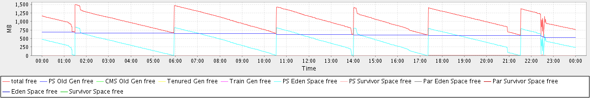 avg(total free) = 1036.45 avg(PS Old Gen free) = 621.22 avg(CMS Old Gen free) = 0.00 avg(Tenured Gen free) = 0.00 avg(Train Gen free) = 0.00 avg(PS Eden Space free) = 413.33 avg(PS Survivor Space free) = 1.90 avg(Par Eden Space free) = 0.00 avg(Par Survivor Space free) = 0.00 avg(Eden Space free) = 0.00 avg(Survivor Space free) = 0.00