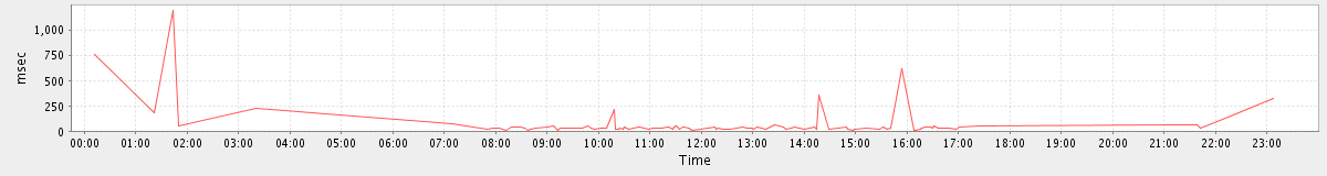 avg(SyncGalRequest) = 169.85 avg(GetInfoRequest) = 205.00 avg(BackupQueryRequest) = 790.00 avg(CreateAppointmentRequest) = 3942.00 avg(CreateSignatureRequest) = 303.00 avg(GetFreeBusyRequest) = 209.67 avg(SendMsgRequest) = 1525.00 avg(BackupRequest) = 47652.00 avg(ModifyPrefsRequest) = 355.33 avg(SearchConvRequest) = 220.00