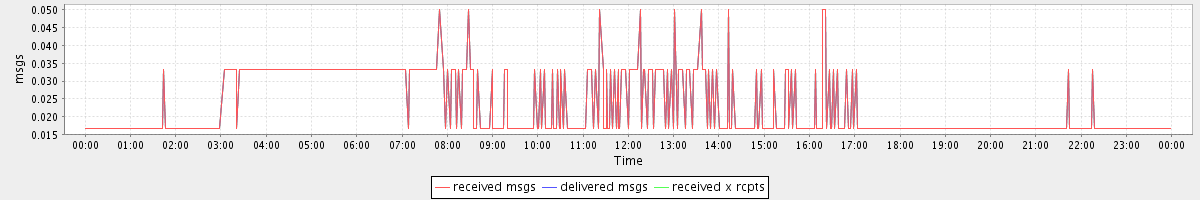 avg(received msgs) = 0.01 avg(delivered msgs) = 0.01 avg(received x rcpts) = 0.01