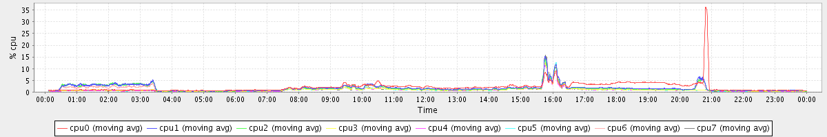 avg(cpu0) = 1.07 avg(cpu1) = 0.22 avg(cpu2) = 0.21 avg(cpu3) = 0.09 avg(cpu4) = 0.10 avg(cpu5) = 0.09 avg(cpu6) = 0.17 avg(cpu7) = 0.10