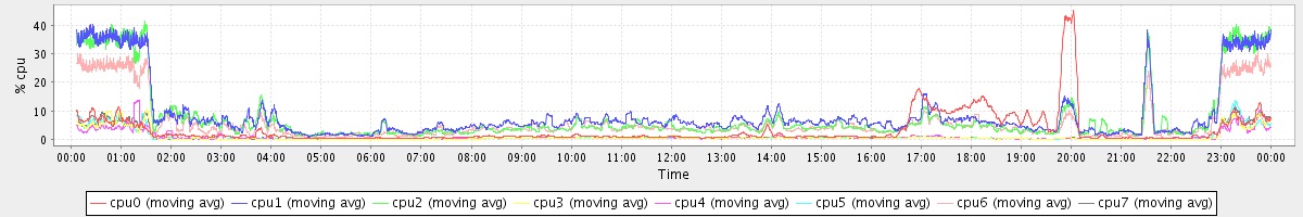 avg(cpu0) = 3.27 avg(cpu1) = 8.72 avg(cpu2) = 7.72 avg(cpu3) = 0.91 avg(cpu4) = 0.86 avg(cpu5) = 0.99 avg(cpu6) = 6.04 avg(cpu7) = 1.07
