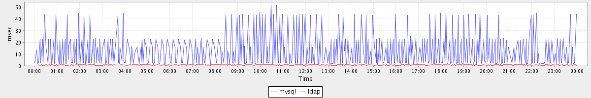 avg(mysql) = 0.23 avg(ldap) = 4.21