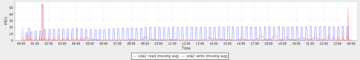 avg(sda2 read) = 0.29 avg(sda2 write) = 5.66