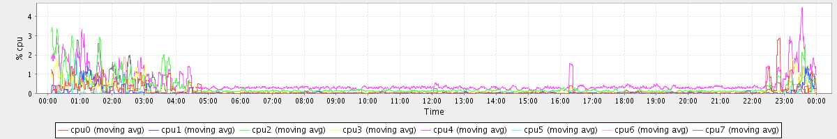 avg(cpu0) = 0.13 avg(cpu1) = 0.07 avg(cpu2) = 0.31 avg(cpu3) = 0.16 avg(cpu4) = 0.53 avg(cpu5) = 0.06 avg(cpu6) = 0.06 avg(cpu7) = 0.12