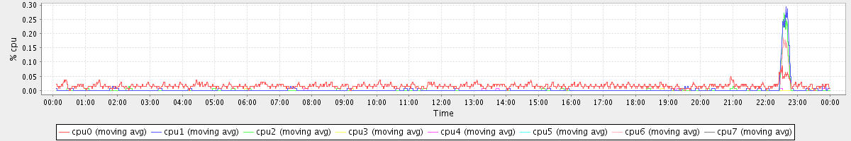 avg(cpu0) = 0.59 avg(cpu1) = 0.46 avg(cpu2) = 0.31 avg(cpu3) = 0.29 avg(cpu4) = 0.20 avg(cpu5) = 0.16 avg(cpu6) = 0.18 avg(cpu7) = 0.15