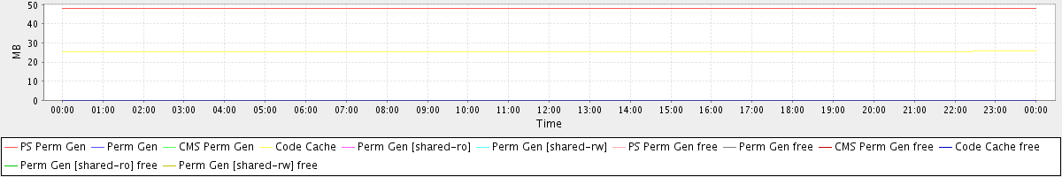 avg(PS Perm Gen) = 48.14 avg(Perm Gen) = 0.00 avg(CMS Perm Gen) = 0.00 avg(Code Cache) = 25.44 avg(Perm Gen [shared-ro]) = 0.00 avg(Perm Gen [shared-rw]) = 0.00 avg(PS Perm Gen free) = 47.80 avg(Perm Gen free) = 0.00 avg(CMS Perm Gen free) = 0.00 avg(Code Cache free) = 0.09 avg(Perm Gen [shared-ro] free) = 0.00 avg(Perm Gen [shared-rw] free) = 0.00
