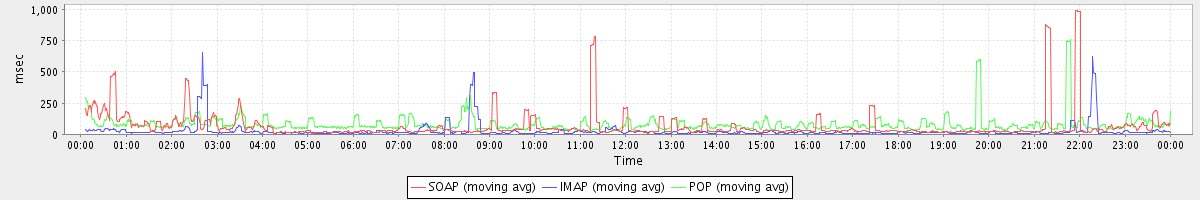 Host zm02.stanford.edu: Mailboxd: Response Time by Client Protocol